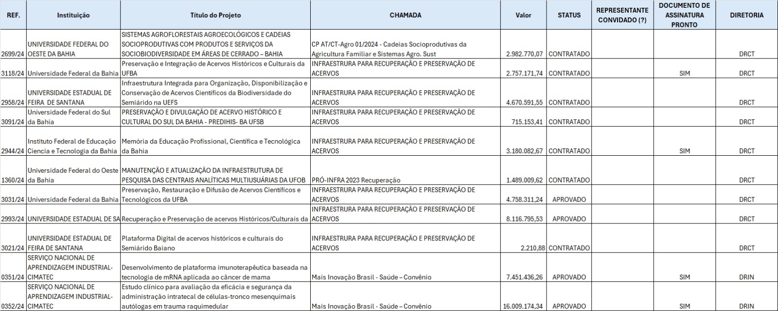 A Finep assinou, na segunda-feira (19/5), na UNEB (Universidade do Estado da Bahia), cerca de R$ 60 milhões para 11 projetos de inovação baianos em temas como infraestrutura de pesquisa para recuperação e preservação de acervos, cadeias socioprodutivas e agricultura familiar e sistemas de agricultura sustentável.