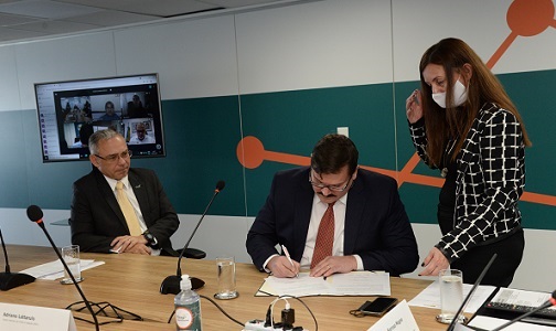 Posseotavio2Otávio assina o termo de posse observado por Marcelo Bortolini, diretor de Desenvolvimento Científico-Tecnológico da Finep.
