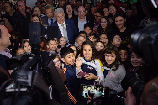 Ele foi recebido por crianças de escolas públicas da capital sul-matogrossense que haviam acabado de assistir a um vídeo sobre bioeconomia (tema da SBPC), no estande da Finep. Depois, conheceu detalhes do espaço montado pela financiadora bem na entrada da feira, sempre acompanhado pelo presidente da empresa, general Waldemar Barroso.