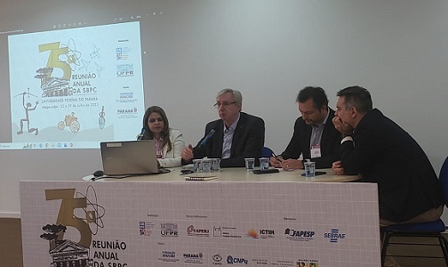 Celso Pansera, presidente da Finep, Bruno Portela, do Ministério da Fazenda, e André Rauen, do Ipea, defenderam nesta quinta-feira (27/7), na 75ª Reunião Anual da SBPC, a criação de um programa governamental de compras públicas de inovação no financiamento da infraestrutura de pesquisa e de inovação. A mesa-redonda foi coordenada por Luciana da Silva, do Instituto de Ciência, Tecnologia e Inovação de Maricá (ICTIM). Veja link.