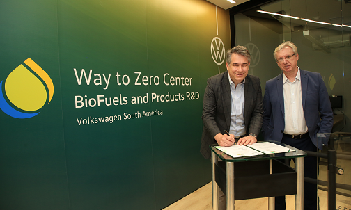 O pilar ‘Descarbonização’ inclui as atividades, processos e tecnologias para reduzir a pegada de carbono dos veículos em todo o ciclo de vida, entre as quais o desenvolvimento do Way to Zero Center para gerenciamento de CO2 e de pesquisas que possam gerar ações vinculadas aos veículos para atingir sua neutralidade em carbono. Localizado na fábrica Anchieta da Volkswagen do Brasil, em São Bernardo do Campo (SP), o Way to Zero Center fomenta a inovação e a geração de conhecimento científico e tecnológico na área da mobilidade de baixo carbono, inclusive biocombustíveis. A iniciativa abre oportunidades para a indústria como um todo, pois ao investir em pesquisa e desenvolvimento, promove o networking com troca de informações que fortalecem o setor de energia renovável no Brasil.